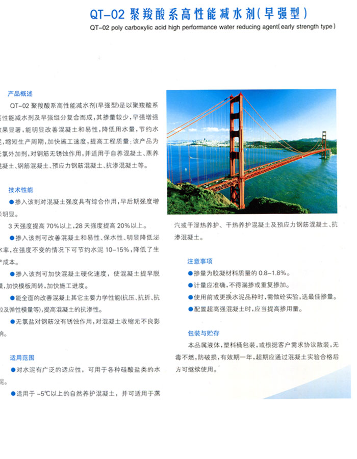 青海西寧橋通建材有限公司一家集減水劑、速凝劑、錨固劑、保塑劑、防腐劑、防水劑、膨脹劑、養(yǎng)護(hù)劑、混凝土外加劑及相關(guān)建材外加劑的研發(fā)、生產(chǎn)、銷售于一體的大型建材公司,位于西寧市城東團(tuán)結(jié)橋,地理環(huán)境優(yōu)越,交通便利。多年來,公司一直致力于高分子化工、精細(xì)化工、無機(jī)化工域的技術(shù)研發(fā)與改進(jìn),擁有工程師和質(zhì)量監(jiān)控設(shè)備,相關(guān)產(chǎn)品已經(jīng)通過is09001質(zhì)量管理體系。公司秉承“行勝于言”的精神,堅(jiān)持以持續(xù)的技術(shù)創(chuàng)新不斷地為客戶創(chuàng)造價(jià)值,產(chǎn)品及服務(wù)涵蓋國防、高鐵、冶金、電力、石化、煤礦、機(jī)械、建筑、鐵路等多個(gè)行業(yè)的工程建設(shè)領(lǐng)域。公司產(chǎn)品種類,以用戶要求為高目標(biāo),將產(chǎn)品于青海西寧、西藏拉薩、新疆烏魯木齊及各個(gè)地縣,贏得廣大客戶的支持與信賴!我們?cè)概c客戶建立長期合作關(guān)系,咨詢電話:13897429995,18797387188,期盼新老客戶的精誠合作,共創(chuàng)明天的!